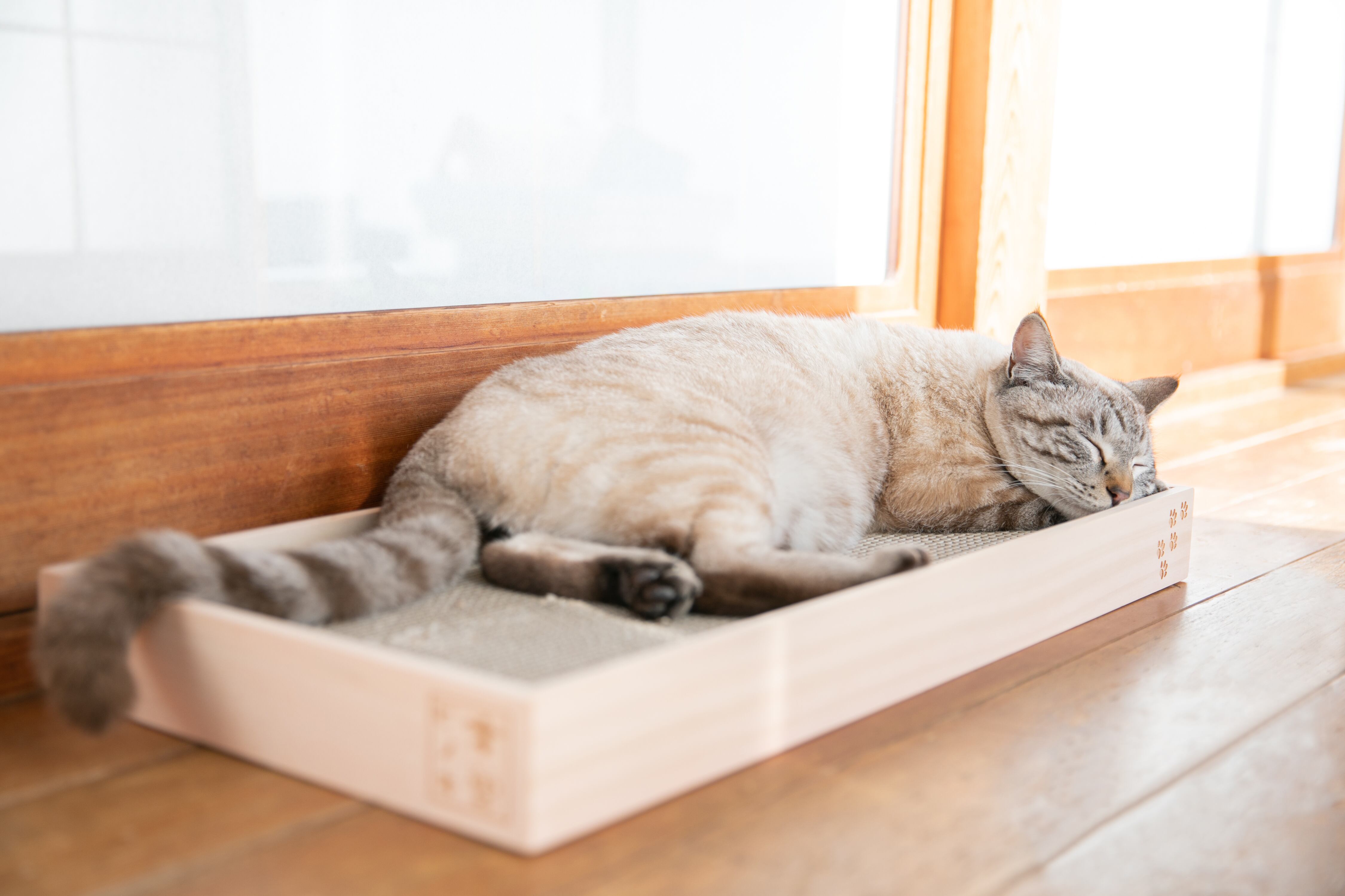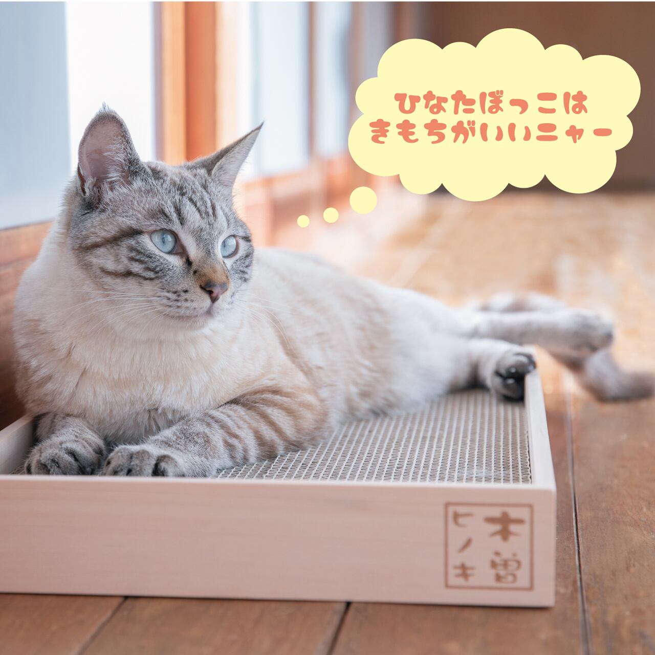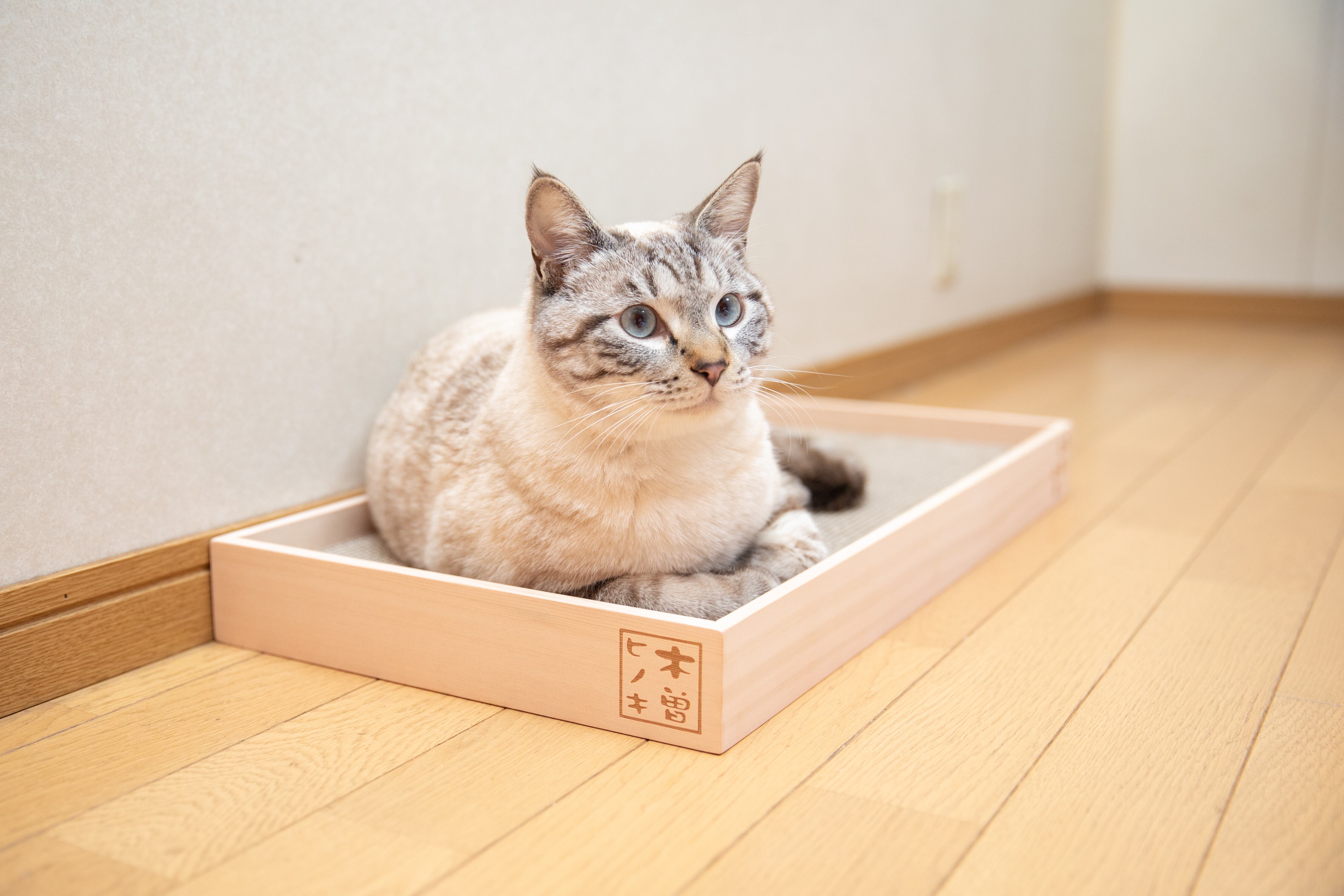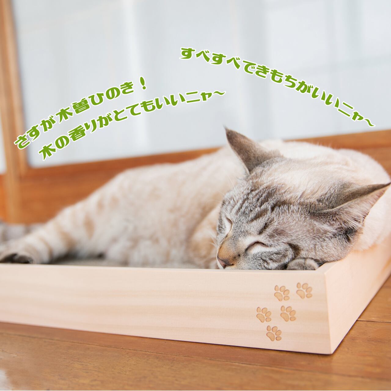 猫のつめとぎ 天然木曽ヒノキフレーム付。天然木曽ヒノキを使用した香り漂う木製フレーム付きのつめとぎ。ヒノキ特有の「癒し」の香りと、すべすべの木肌の手触りをお楽しみください。お洒落な焼印付。 | NIHONSEKISO
