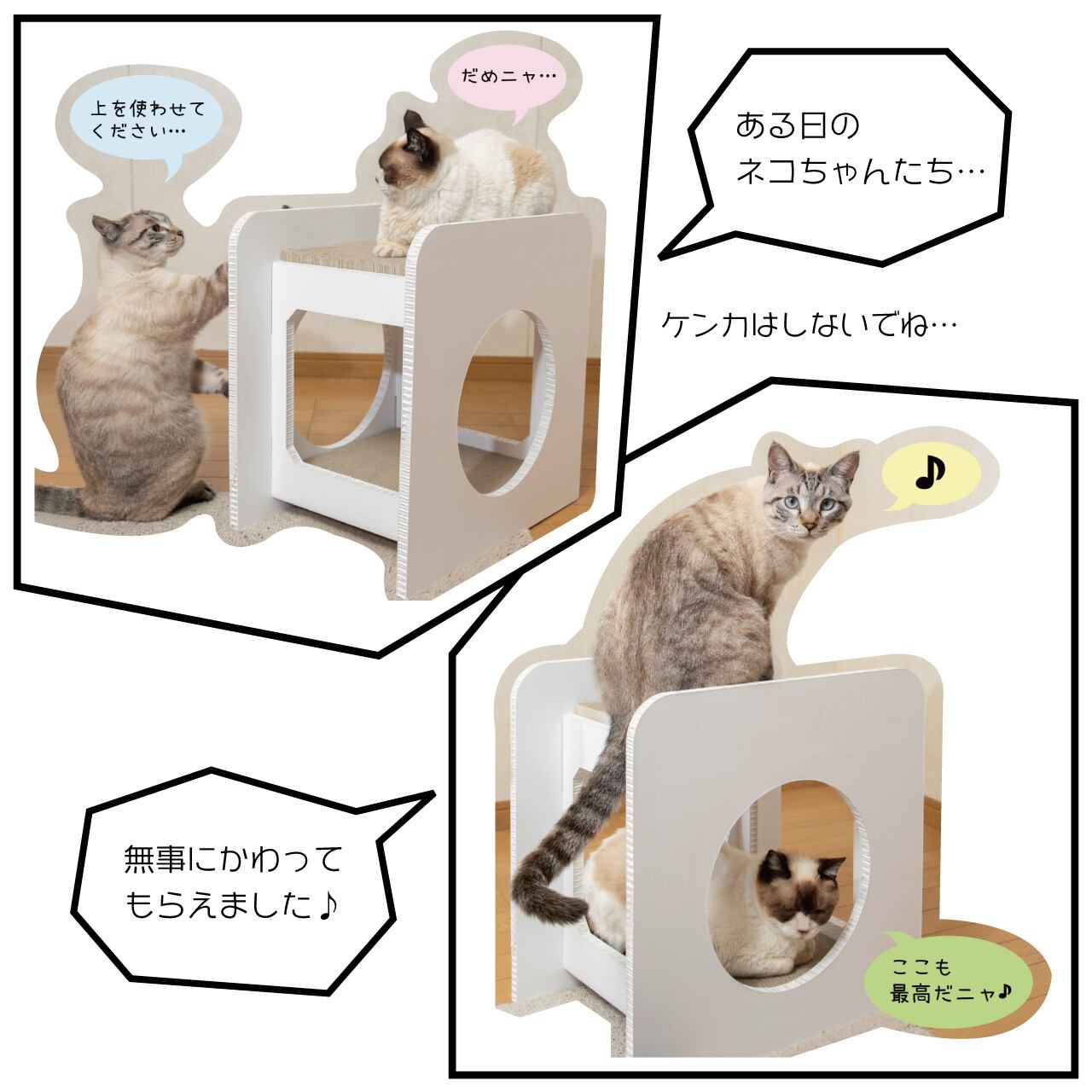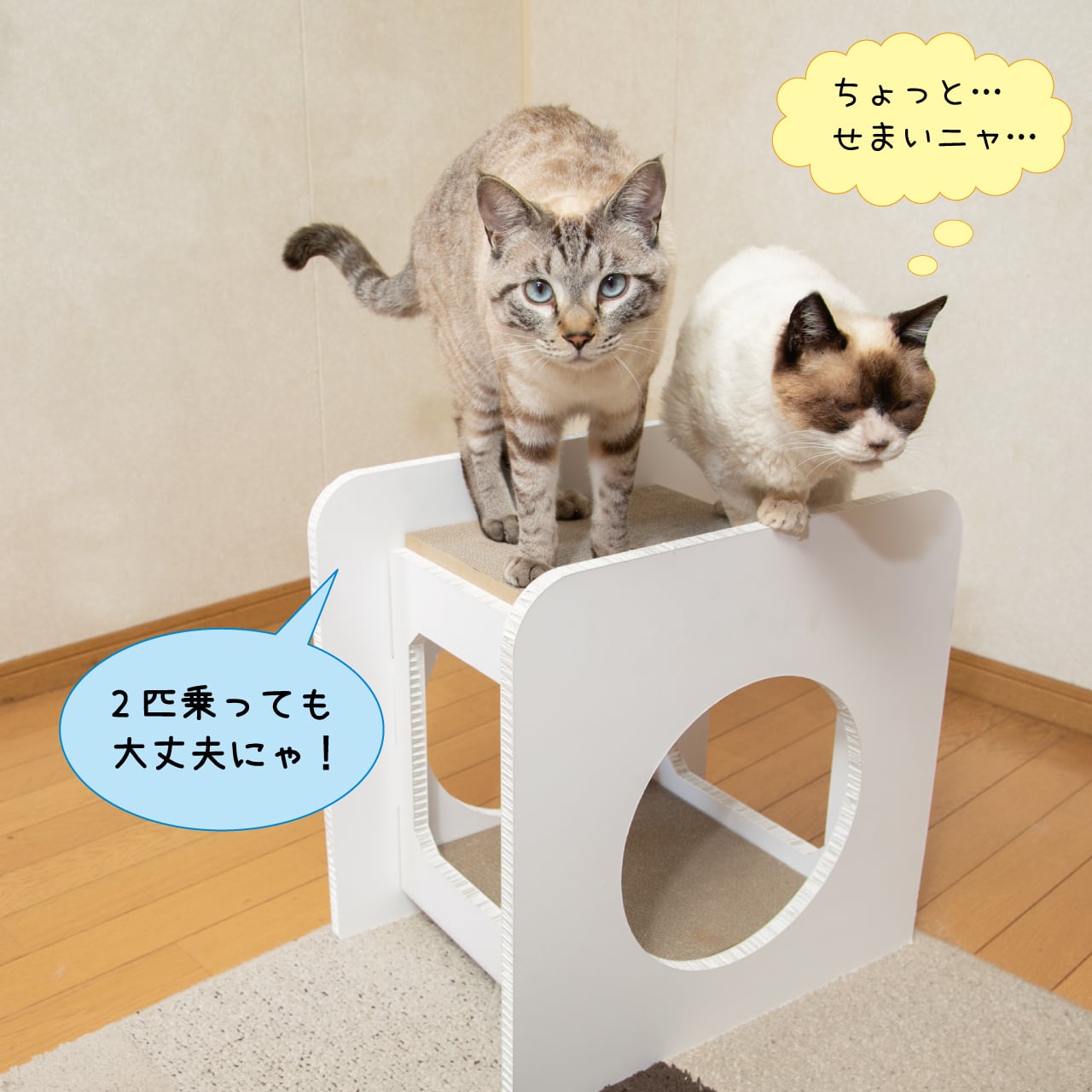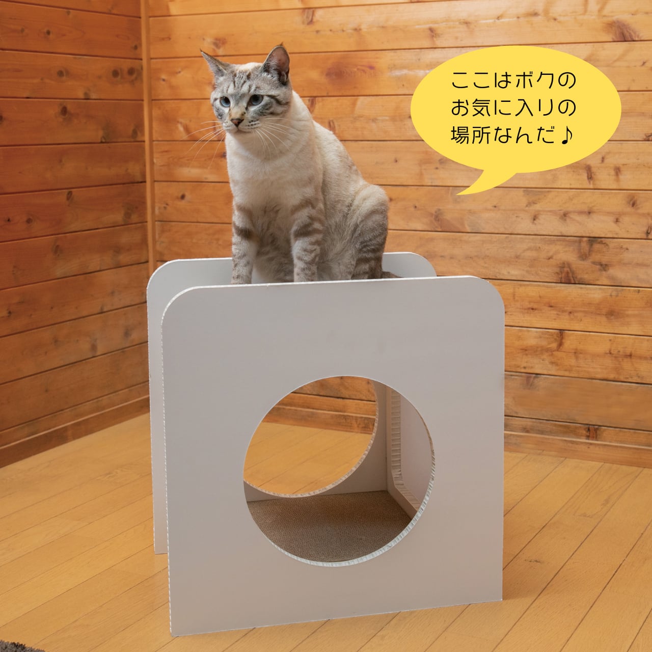 すべて真っ白な紙製の「ぷらすはうす『しかく』」です。つめとぎにおしゃれな『しかく』はうすを「ぷらす」しました。素材はハニカム構造だから紙製でも非常に強度があり軽量です。